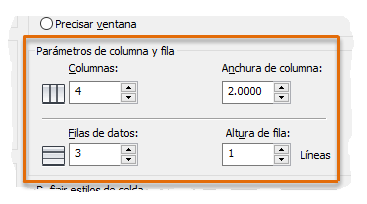 - En el cuadro de diálogo Insertar tabla, introduzca 4 columnas y 3 filas de datos. Especifique una ubicación para la tabla.