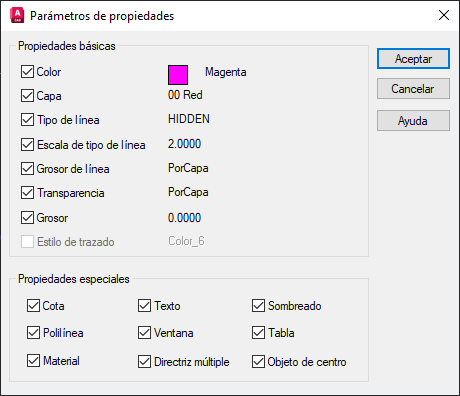 IGUALARPROP | Aplica las propiedades de un objeto seleccionado a otros objetos. |