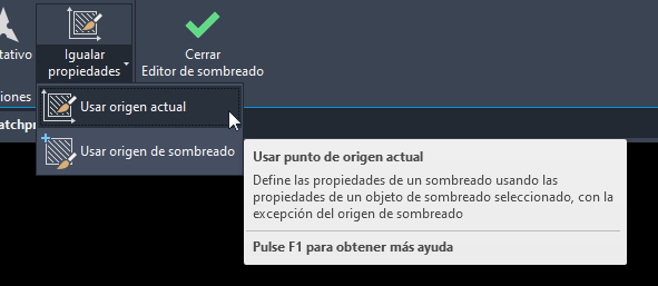 Cuando se utiliza IGUALARPROP para copiar propiedades de un objeto de sombreado a otro, las coordenadas del origen de sombreado también se copian. Para evitar que se copie el origen, siga los pasos que se indican a continuación.