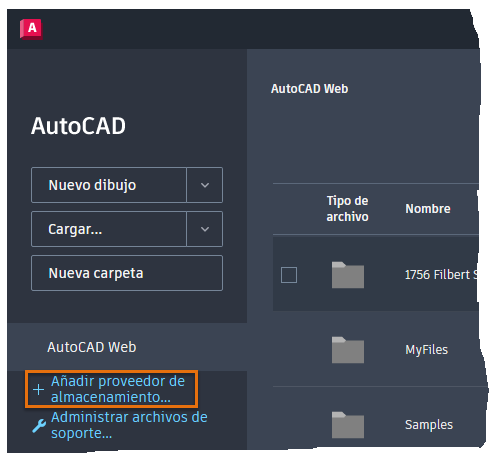 Añadir un proveedor de almacenamiento en la nube a la aplicación web de AutoCAD
