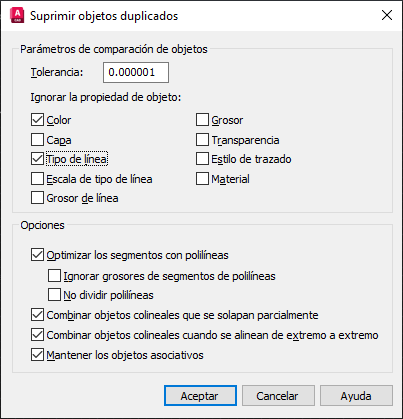 Imagine que tiene un dibujo con muchas líneas, arcos y polilíneas duplicados o solapados. El comando ELIMINARSOBRANTE ayuda a eliminar estos objetos en función de las propiedades.