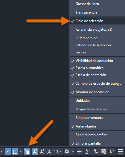 El ciclo de selección se puede activar o desactivar desde la barra de estado. Buscar