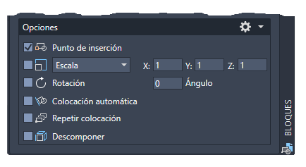 Cuatro elementos participan en la inserción de bloques en un dibujo.