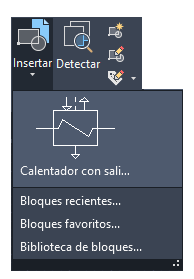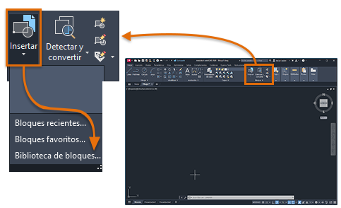 - Haga clic en Insertar en la ficha Inicio y haga clic en Bloques de bibliotecas. Esta acción inicia el comando PALETABLOQUES.