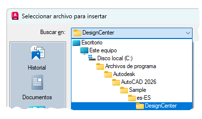 Nota: También puede desplazarse directamente a un archivo de dibujo para insertarlo como un bloque.