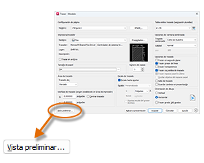 La ventana de vista preliminar resultante incluye una barra de herramientas con varios controles, incluidos Trazar y Cerrar ventana de vista preliminar.
