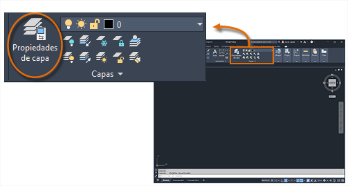 Para ver cómo se organiza un dibujo, utilice el comando CAPA para abrir el Administrador de propiedades de capas. Puede introducir CAPA o CA en la ventana de comandos, o bien hacer clic en la herramienta Propiedades de capa en la cinta de opciones.