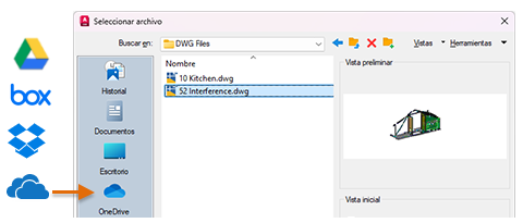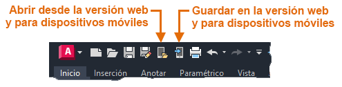 Si cree que necesita acceder a los dibujos desde una ubicación remota, pruebe a utilizar los comandos Guardar en la versión web y para dispositivos móviles, y Abrir desde la versión web y para dispositivos móviles.