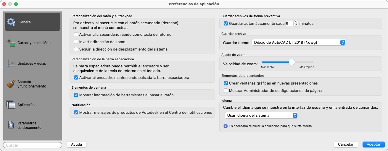 Minutos entre guardados: cuando Guardado automático está activado, indica con qué frecuencia se guarda el dibujo. (Variable de sistema SAVETIME).