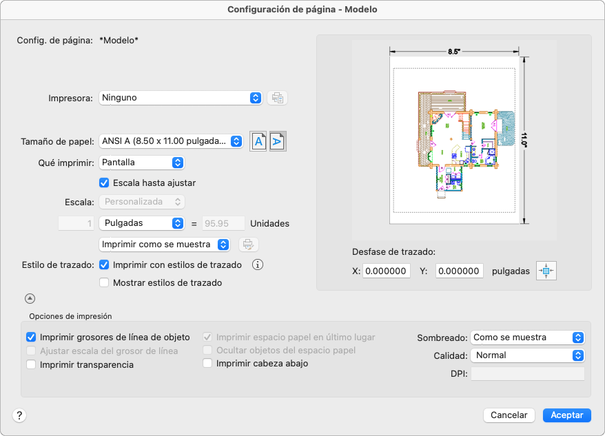 Controla la visualización de opciones adicionales en el cuadro de diálogo Trazar.