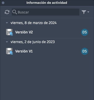 Utilice la herramienta Información de actividad para ver las aportaciones de sus compañeros de equipo a los archivos de dibujo compartidos, consultar historiales de versiones y colaborar en los productos de AutoCAD.