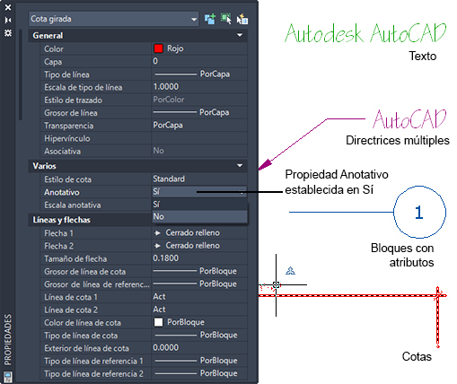 A continuación se enumeran las anotaciones comunes que puede crear en un dibujo.