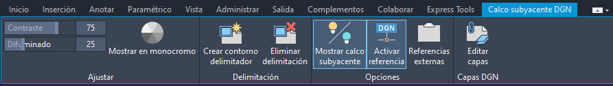Ficha contextual de la cinta de opciones Calco subyacente de DGN