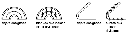 - Especificar un número de distancias iguales entre puntos o bloques en un objeto seleccionado (comando DIVIDE)