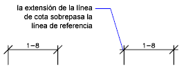 - Controlar la distancia en la que la línea de cota debe superar las líneas de referencia en los extremos de cota oblicuos gruesos (trazos oblicuos)