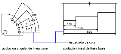 - Controlar el espaciado entre líneas de cota sucesivas en las cotas de línea base
