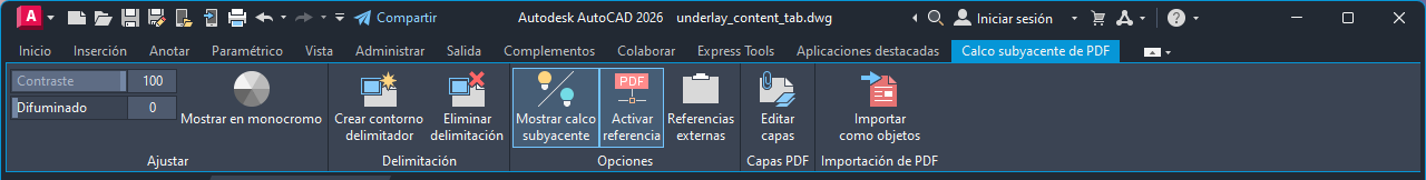 Calco subyacente de PDF (ficha contextual de la cinta de opciones)