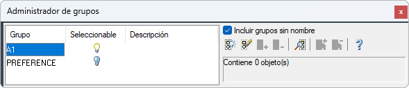 Cuando un grupo no es seleccionable, el icono en forma de bombilla no está disponible y al seleccionar un único miembro del grupo se selecciona sólo ese objeto. Cuando la variable de sistema PICKSTYLE se establece en 0, ningún grupo es seleccionable.