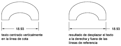 El texto se puede desplazar a una nueva ubicación o se puede dejar en el emplazamiento inicial, esto es, en el emplazamiento que establece el estilo de acotación actual. En la siguiente figura, la posición inicial es centrada y encima de la línea de cota.