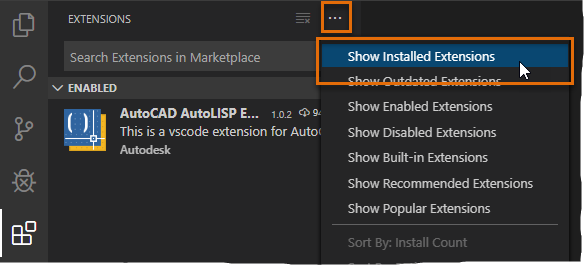 - In the Extensions view, click More Actions… > Show Installed Extensions.