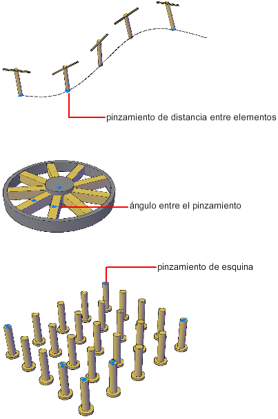 Los tipos de pinzamientos y las opciones de menú dinámico que se muestran dependen del tipo de matriz.