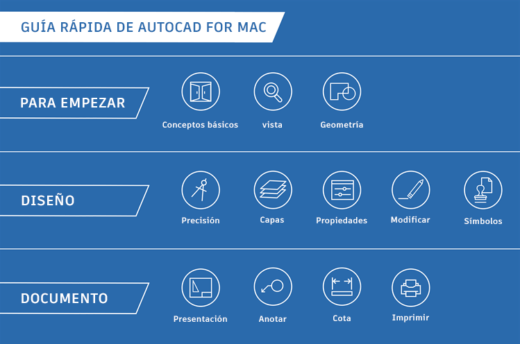 Si es un nuevo usuario de AutoCAD for Mac o AutoCAD LT for Mac, esta guía le presenta los comandos esenciales que necesita para crear dibujos 2D. También es un excelente punto de partida para refrescar la memoria si acaba de completar la formación inicial o si solo utiliza AutoCAD for Mac de vez en cuando.
