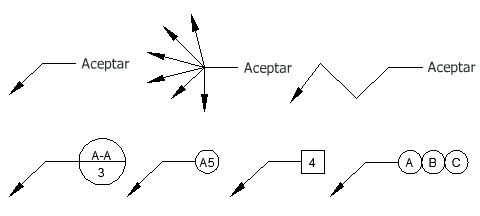 Los objetos de directriz múltiple se utilizan para crear texto con líneas de directriz, como etiquetas generales, etiquetas de referencia, referencias numéricas y llamadas.