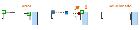 Los pinzamientos se muestran al seleccionar un objeto sin iniciar un comando. Estos son a menudo útiles para la edición de luces. Por ejemplo, la línea mostrada a continuación se fuerza accidentalmente al punto final incorrecto. Puede seleccionar la línea desalineada, hacer clic en un pinzamiento y, a continuación, hacer clic para especificar la ubicación correcta.