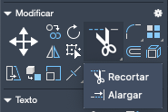 El comando RECORTA sigue los mismos pasos, excepto que al seleccionar los objetos que se van a recortar, se selecciona las partes que se desean recortar.