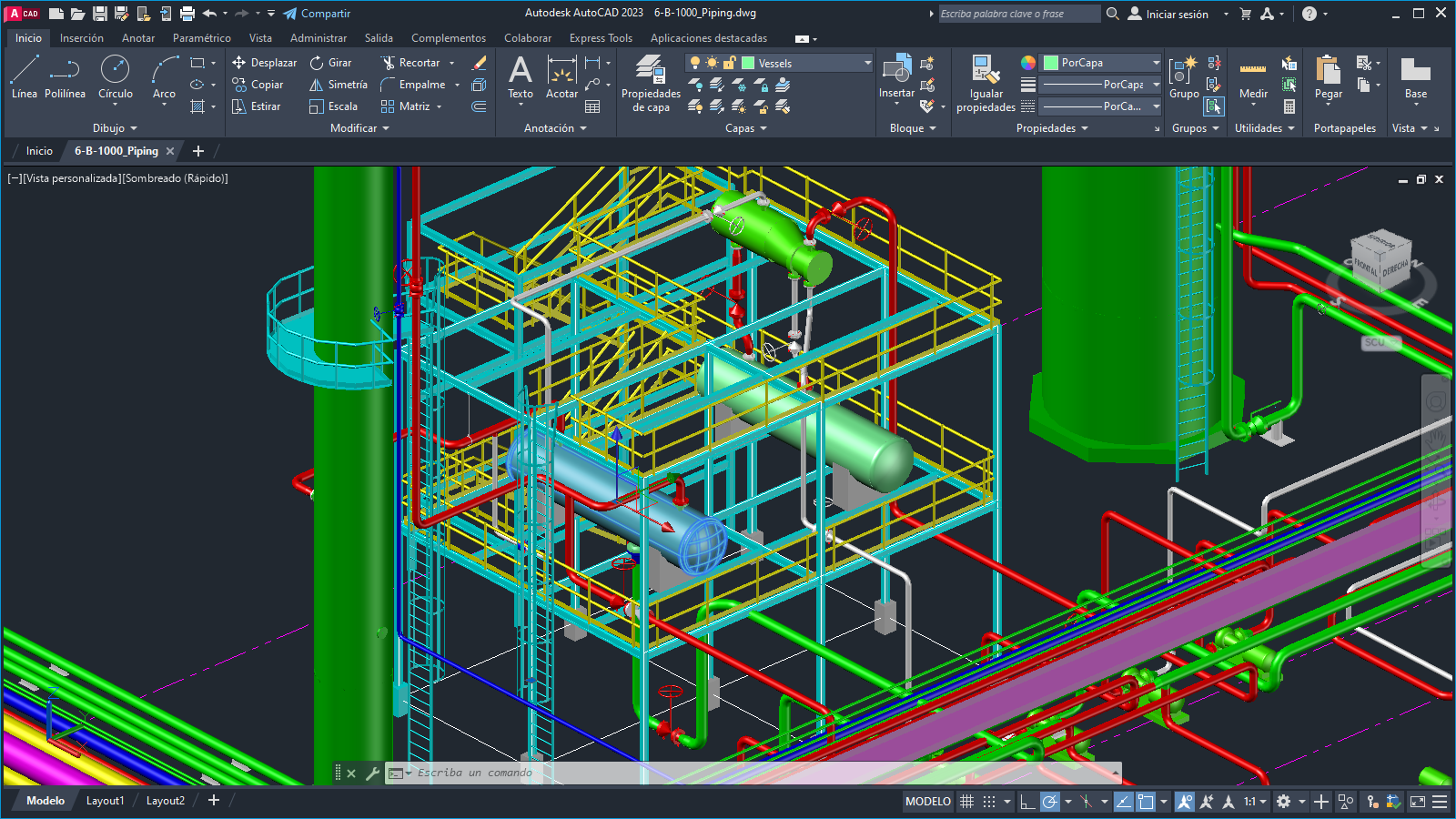 En los estilos visuales Sombreado o Sombreado con aristas, se muestra (Rápido) en el control de ventana gráfica para indicar que se está utilizando el sistema de gráficos 3D moderno.