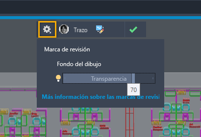 Al visualizar marcas de revisión importadas, puede cambiar la transparencia del fondo para ajustar la visibilidad de la marca de revisión importada.