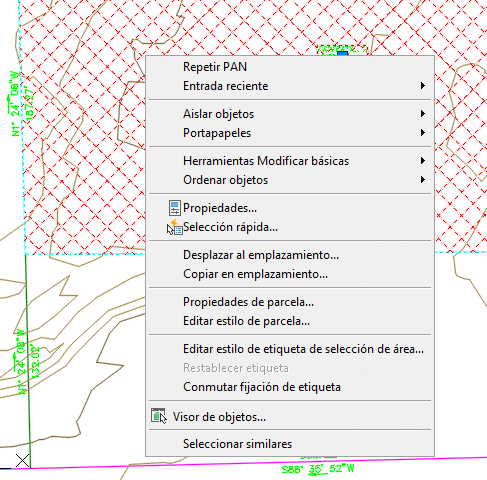 Figura 12: menú contextual de la etiqueta de selección de área de parcela