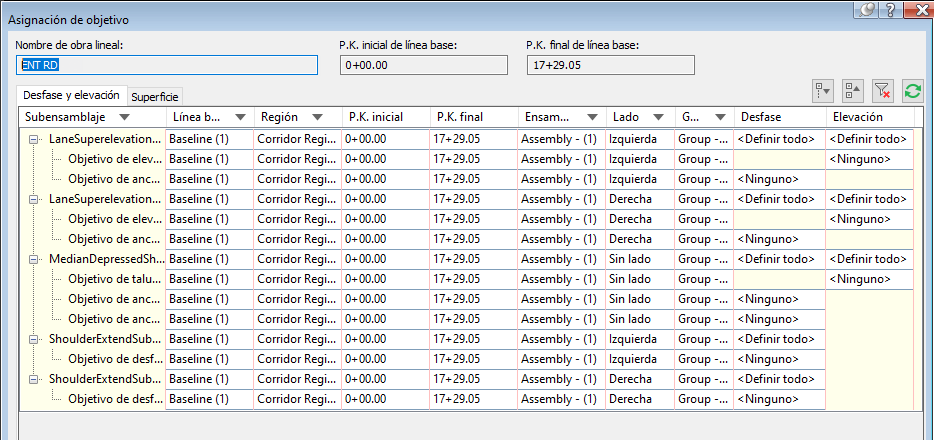 Figura 32: las propiedades de obra lineal proporcionan opciones de objetivos