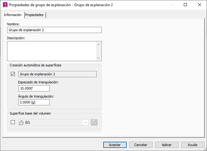 Para corregir la triangulación del arco, debemos definir un valor más ajustado para el espaciado de triangulación en el grupo de explanación. Tal como se muestra en la figura 26, puede resultar difícil localizarlo en el cuadro de diálogo Propiedades de grupo de explanación, ya que sólo se puede definir cuando está activada la opción Creación automática de superficies. Sin embargo, este parámetro también se utiliza en el comando Crear superficie desenlazada y en la triangulación de la explanación en terraplén. Para editar el espaciado, active la opción Creación automática de superficies, cambie el valor por defecto del espaciado de triangulación de 10 pies a 1 pie y vuelva a desactivar la opción de creación automática de superficies. Tras activar la opción Creación automática de superficies debe hacer clic en Aplicar para aplicar los parámetros modificados.