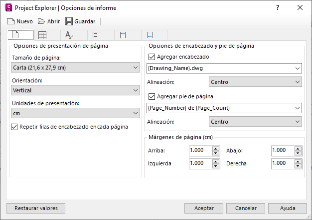 Los Estilos de informe definen el formato de página, las fuentes, el estilo de tabla y el contenido de encabezado/pie de página de los informes de salida.