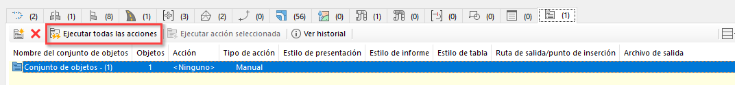 - Al aceptar la opción de "revisar los resultados en la ventana del Historial de salida" inmediatamente después de hacer clic en los botones Ejecutar todas las acciones o Ejecutar acción seleccionada.