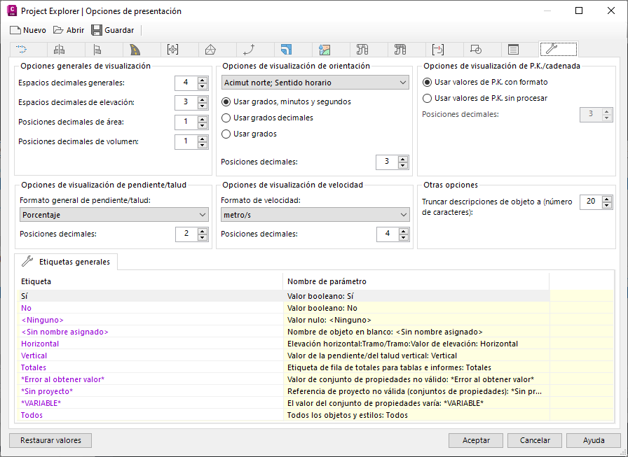 Cambie el parámetro Estilo de diseño a Usar estilo de diseño personalizado y, a continuación, pulse el botón Editar estilo de diseño. Se abre el cuadro de diálogo Opciones de diseño.