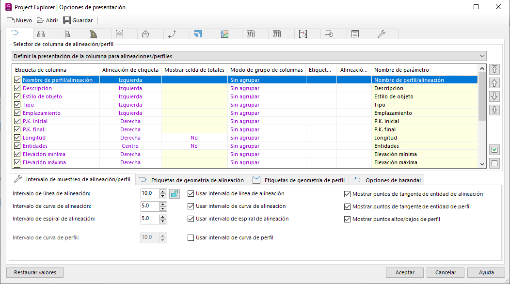 En la barra de herramientas Vista de perfil, realice los siguientes cambios en los parámetros: