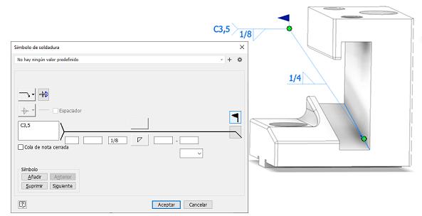Seleccione la geometría en la que desea anclar el símbolo de soldadura.