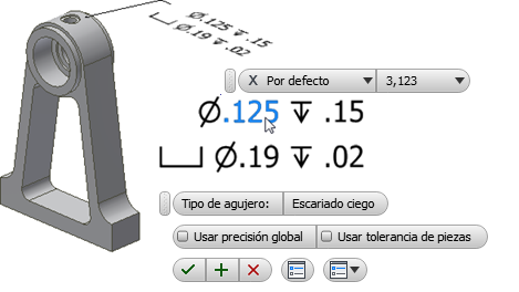 Si edita la anotación 3D que ha subido de nivel, seleccione Sincronizar tolerancia de parámetros para aplicar los cambios de tolerancia a la cota de boceto. Desactive la casilla de verificación para cambiar la tolerancia de anotación 3D sin cambiar la cota de boceto.
