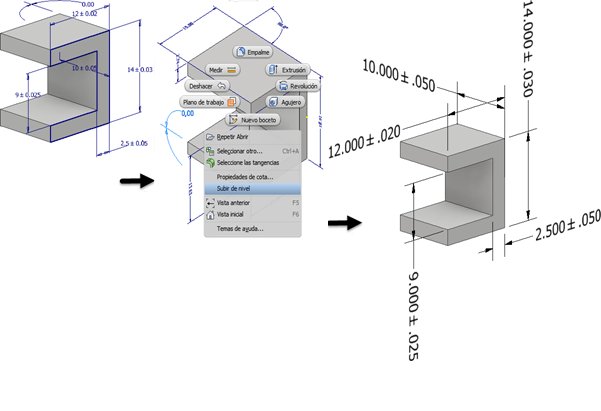 Si la cota de modelo incluye información sobre tolerancias, se incluirá en la cota subida de nivel.
