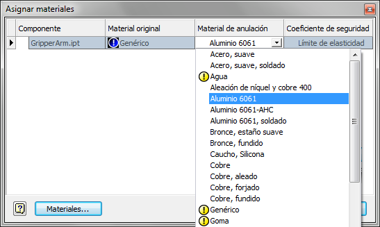 Con el Generador de forma, se deben asignar propiedades de materiales para definir las características estructurales de la pieza.