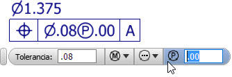 El valor de zona de tolerancia proyectada es cero o un número negativo.