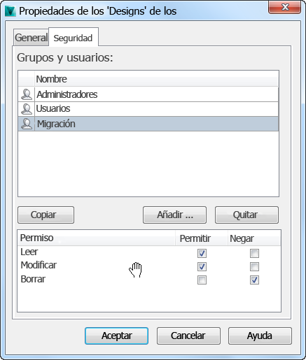 Si desea obtener más información sobre los permisos y el procedimiento empleado para añadir el usuario Migración a cualquier carpeta restringida, consulte el artículo Definición de la pertenencia a una carpeta.