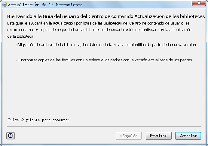 Paso 3: En el cuadro de diálogo Herramienta de actualización, pulse Siguiente para avanzar en el proceso y finalizar la migración de las bibliotecas personalizadas.