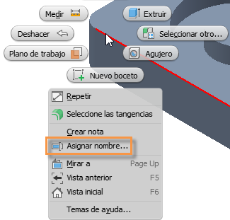 En un archivo de pieza, haga clic con el botón derecho en la geometría que está o estará restringida para otra pieza y seleccione Asignar nombre.
