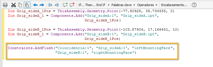 En primer lugar, asigne un nombre a una cara o una arista y, a continuación, cree una regla que añada las restricciones directamente a una cara o arista con esos nombres.