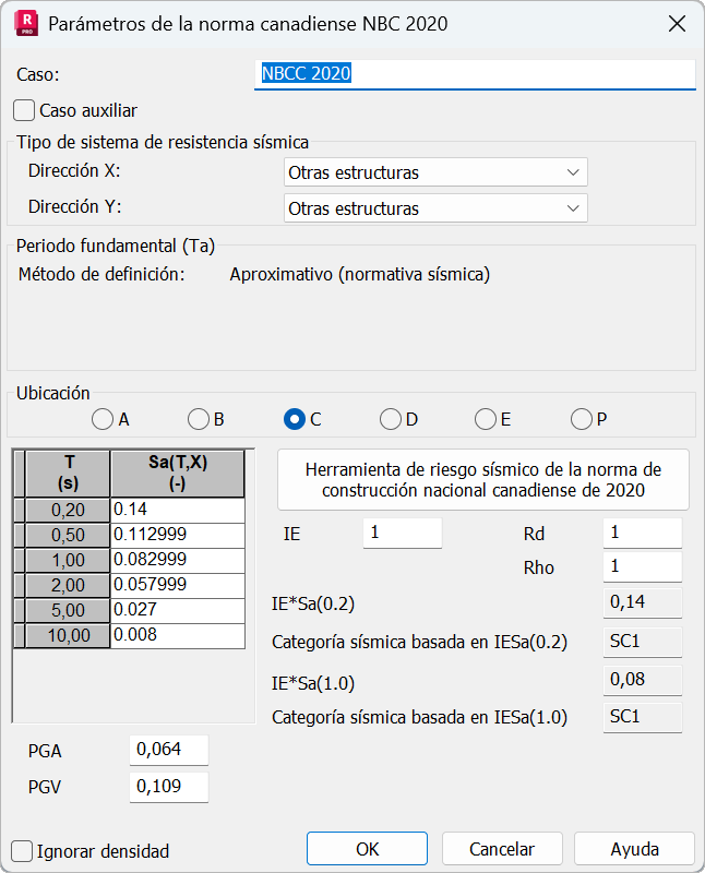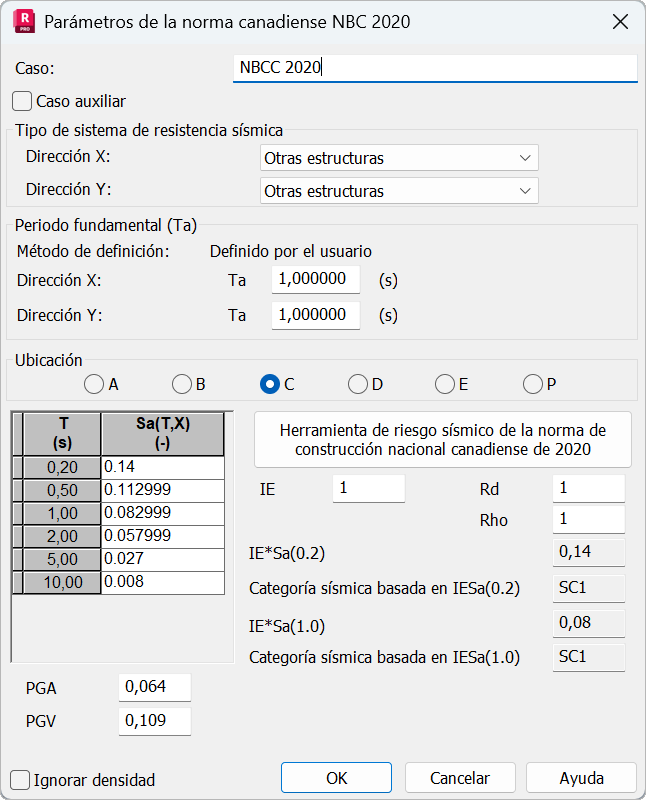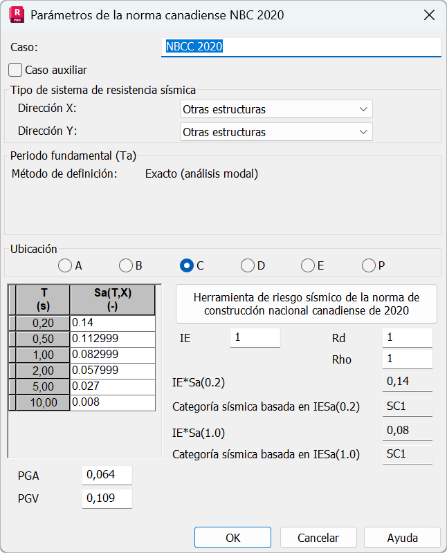 Los parámetros normativos para un análisis sísmico según la norma NBC 2020 se definen de la siguiente manera: