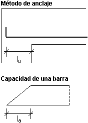 La opción Considerar la longitud del gancho en la longitud de anclaje hace referencia a barras nervuradas (es decir, aquellas para las que se utilizan ganchos de forma opcional), dobladas en el ángulo derecho y ancladas en el soporte.