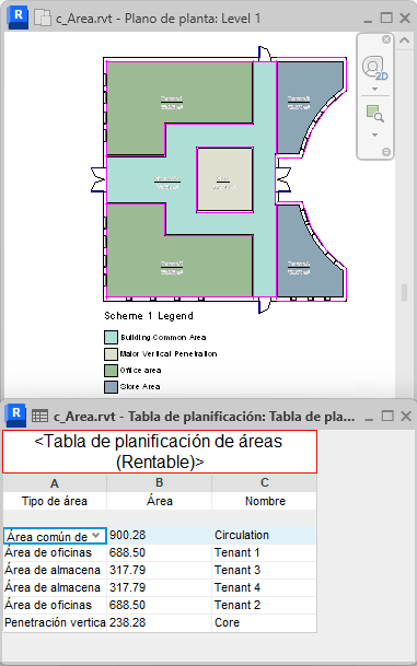 Plano de área y tabla de planificación de áreas